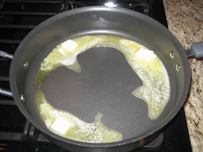 Next take 4 tablespoons of butter and melt into a 10-12 inch skillet on medium. I use a 12″ its easier but before I had this pan I used a 10″.