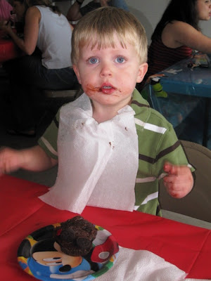 Gavin recently celebrated his third birthday. Ok, a little longer then recently but it has taken me a bit to get the pics onto a CD. He didn’t want a cake this year he wanted cupcakes! Plus, he wanted Mickey Mouse cupcakes!