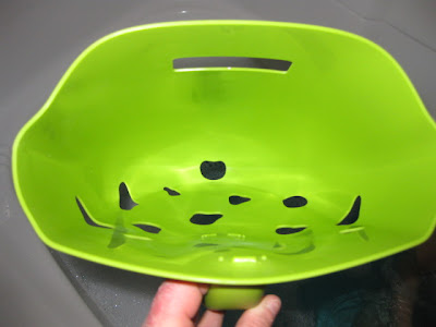 Inside the Frog Pod Base there is a built in hook. The scoop has a hole slot that perfectly fits the hook. This lets the scoop rest inside the base in an upright position allowing the water to drip down and out of the toys.