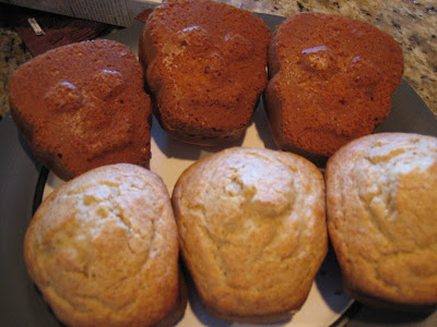 I had the Non-Stick Mini Skulls Cake Pan and thought I’d make some banana bread in them. So with this pan: