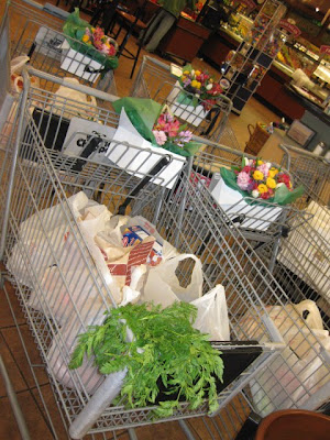It was like supermarket sweeps. We were each given a cart and told to go. I couldn’t think. I started going for the basics of a Sunday Supper. Then I thought of a great mac& cheese with ham crockpot soup. Then my favorite kid friendly breakfast. Ham smiles. Fruit nose and ears. Fried egg eyes, whip cream and jelly bean hair. My kids love these types of thing.