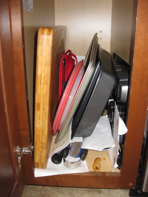 It was super easy to use and even easier to clean. I added the picture below to show you the amount of room it takes up. I’m sorry my cabinet isn’t organized. However, this shows how it’s not using up a ton of space. So little in fact I store it with my cookie sheets!