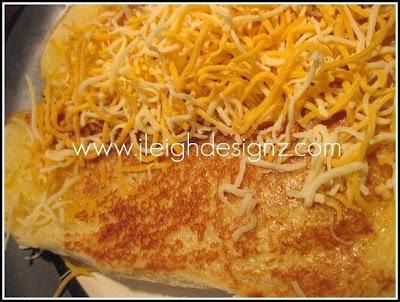 Then add your steak, onion, and pepper mixture and top with more cheese or cheese slices.